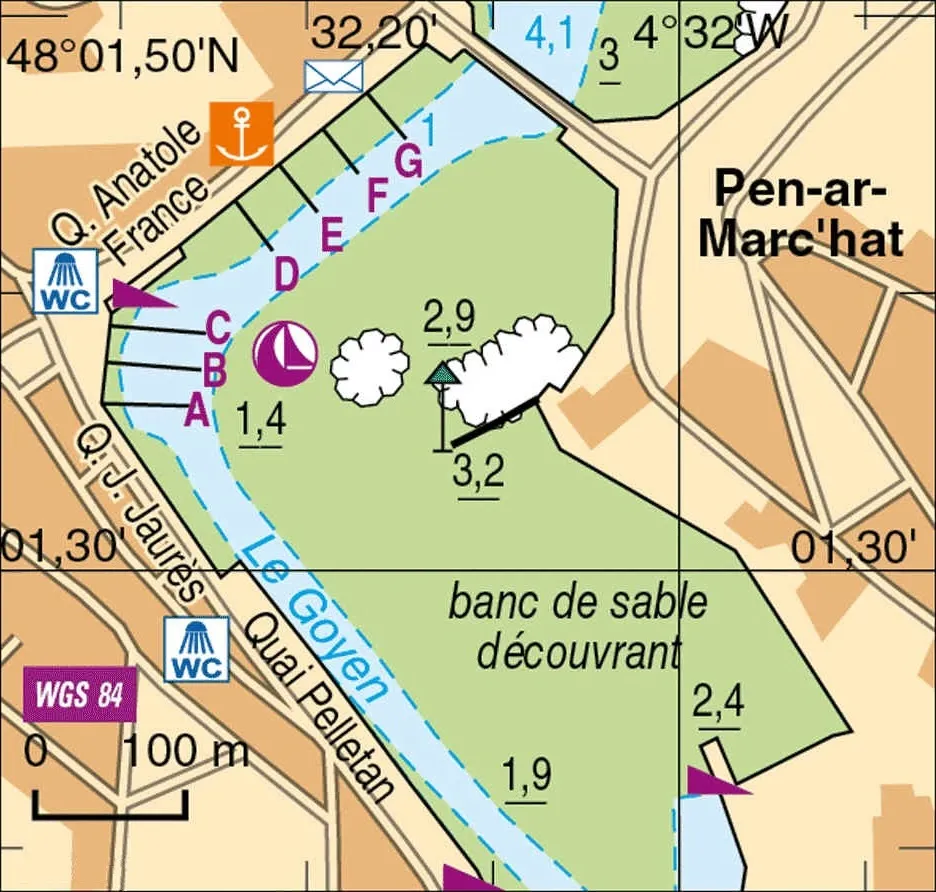 • Port d'échouage, les pontons n'échouent pas A B C.